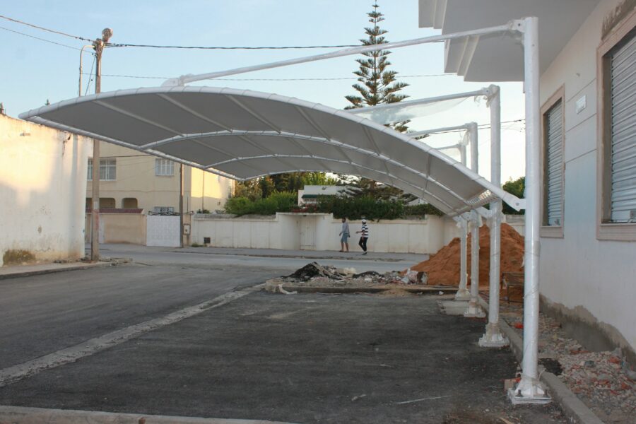La structure intègre une toile tendue de haute résistance. De plus, chaque élément a été traité contre la corrosion. Ainsi, l’abri offre une durabilité maximale dans les conditions climatiques tunisiennes.