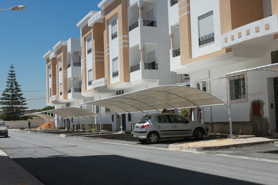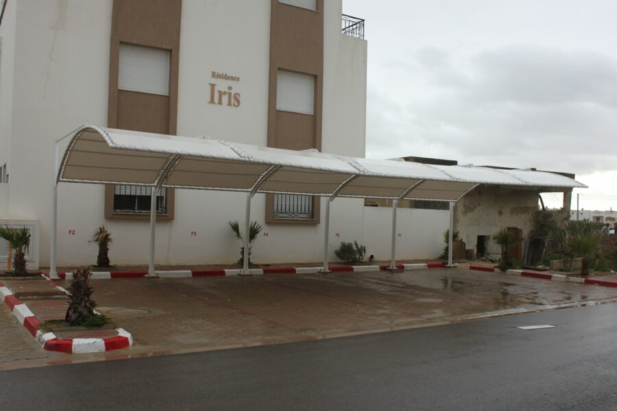 Découvrez notre réalisation d’abri voiture Iris Residence en Tunisie. En effet, Sté GMD a fabriqué et installé cette structure métallique résidentielle sur mesure. Elle protège ainsi les véhicules des résidents en toute saison.